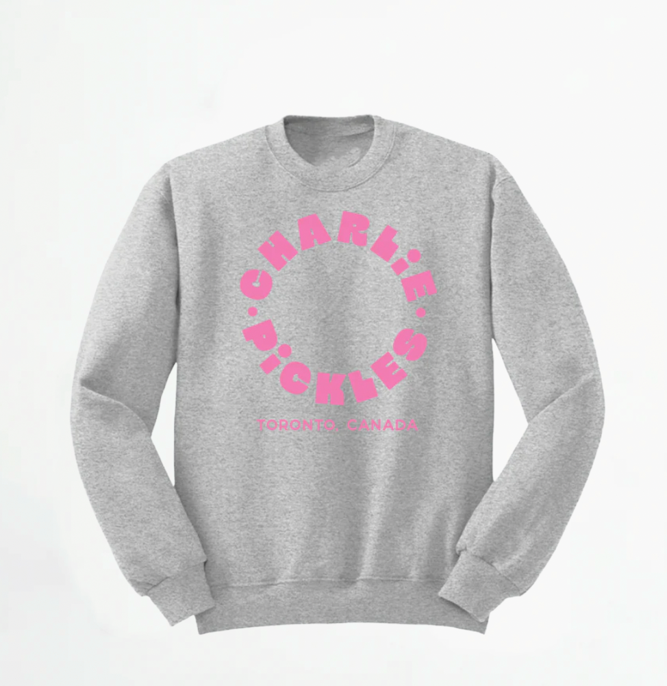 Adult Retro Throwback, Classic Grey Crewneck with Bubblegum Puff