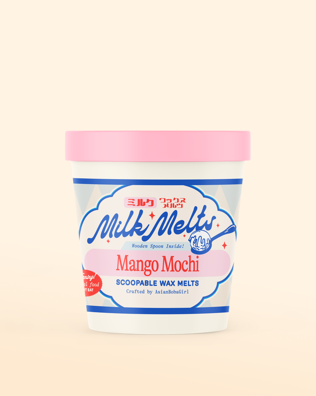 Our new Milk Melts are scoopable wax melts, made with 100% soy wax, packaged in a reusable 5 oz. ice cream container. Each wax melt container comes with a wooden spoon and a pink silicone lid. Note these are not edible —just for your wax burner! Simply scoop your desired amount of wax melt into your burner, melt, and enjoy the cozy, flameless fragrance in your space.