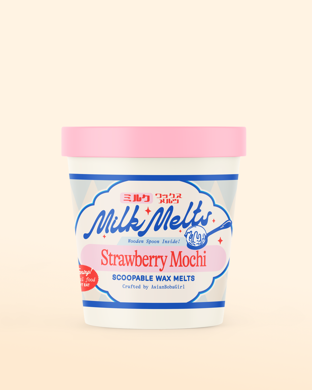 Rich, ripe strawberries blend with the creamy softness of mochi, offering a smooth and subtly sweet scent. The fragrance is balanced, soft, and inviting, with just the right amount of sweetness to fill the room without overwhelming it. This wax melt is made of whipped honey cream essence perfectly blended with swirls of fresh strawberry aura and subtle notes of vanilla cake.