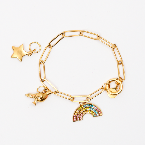 Our thin chain comes with a small round carribeaner on the necklaces and, the bracelet. Our thin bracelet comes in a 7" size.