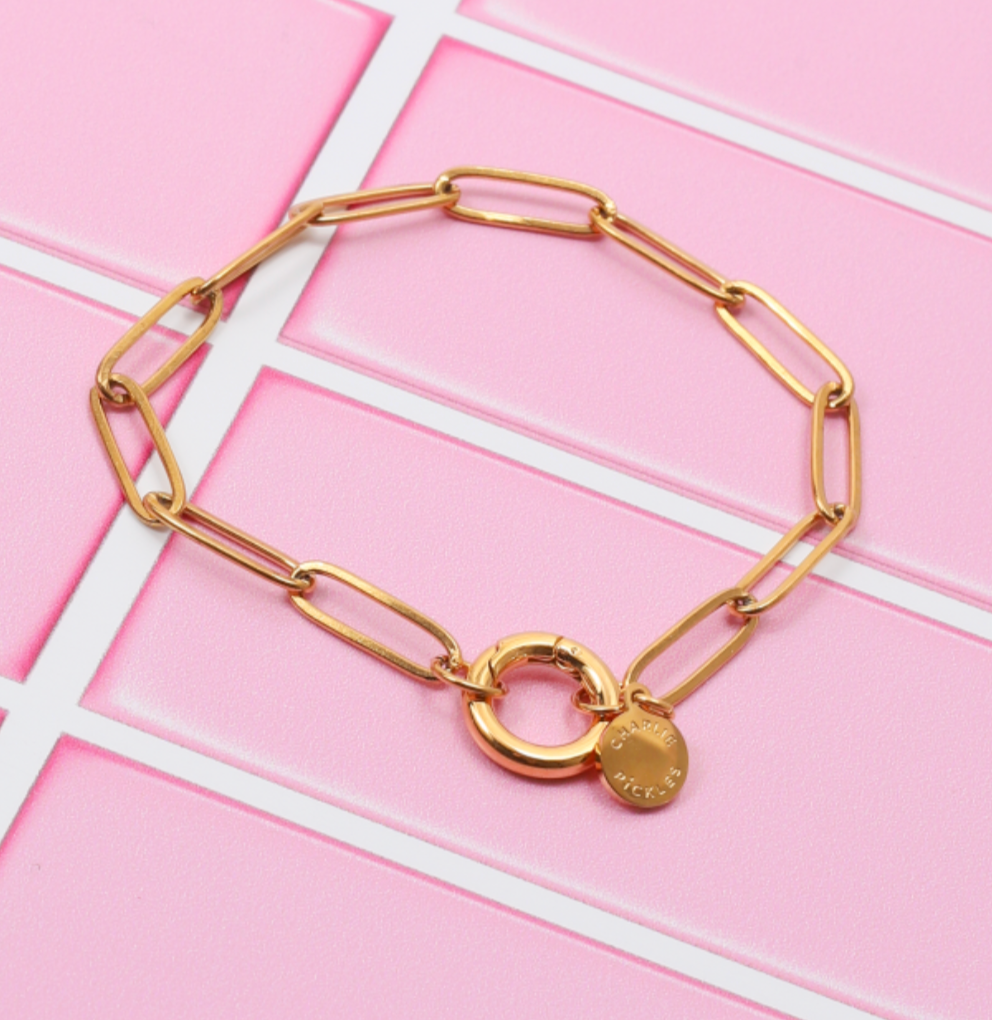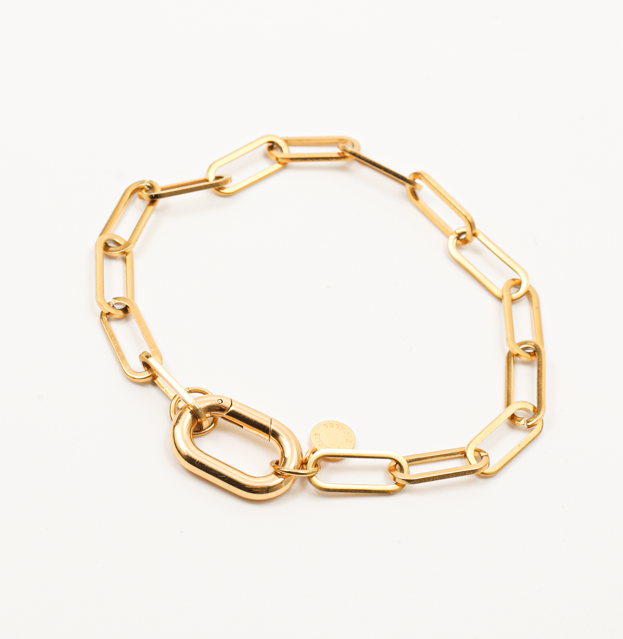 Our thick chains, both the necklaces and bracelets comes with a proportioned thick oval carribeaner on the necklaces and the bracelet. Our thick bracelet comes in a larger, 9" size.