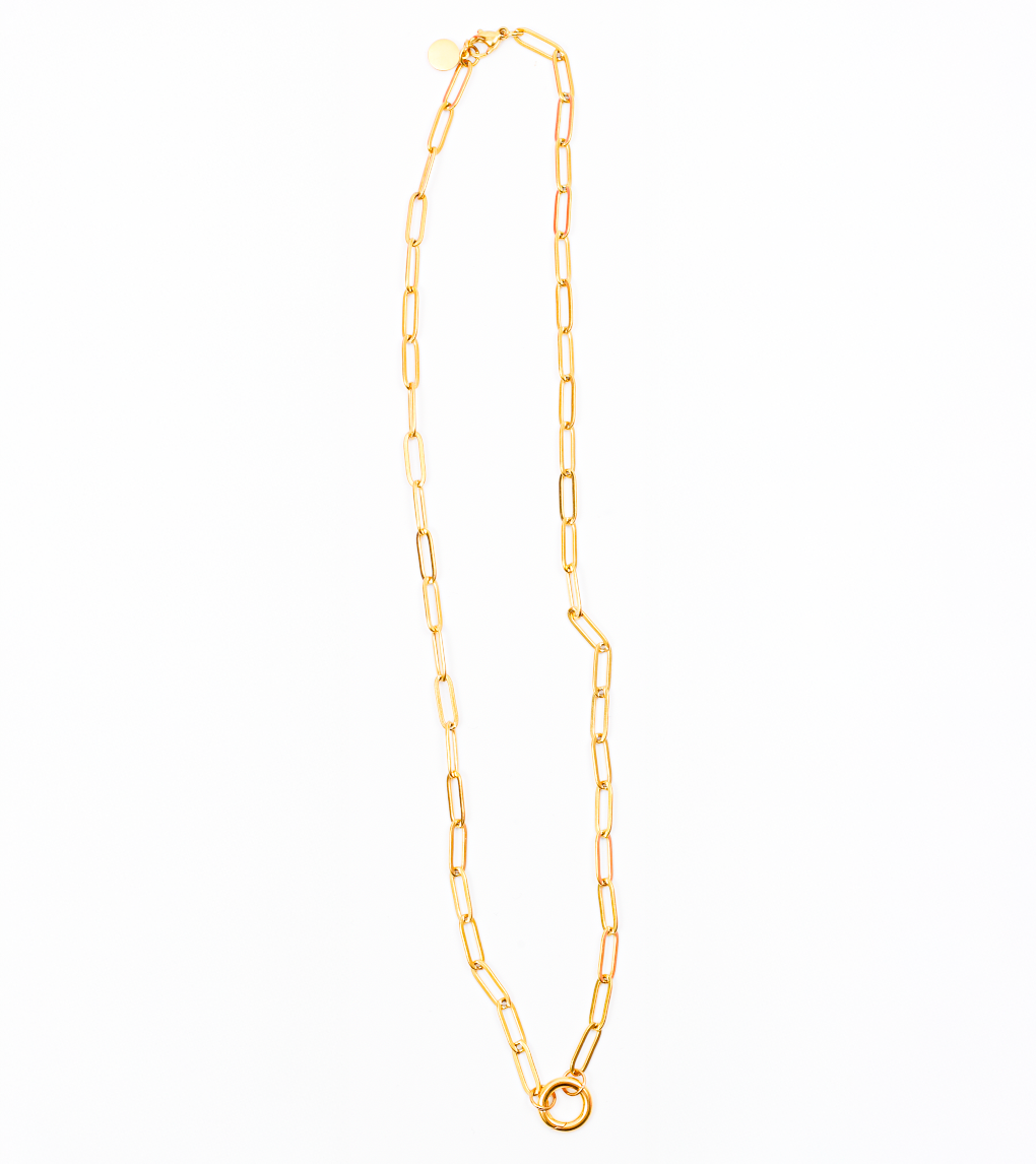 Paperclip Link Necklace, 18k Gold Plated