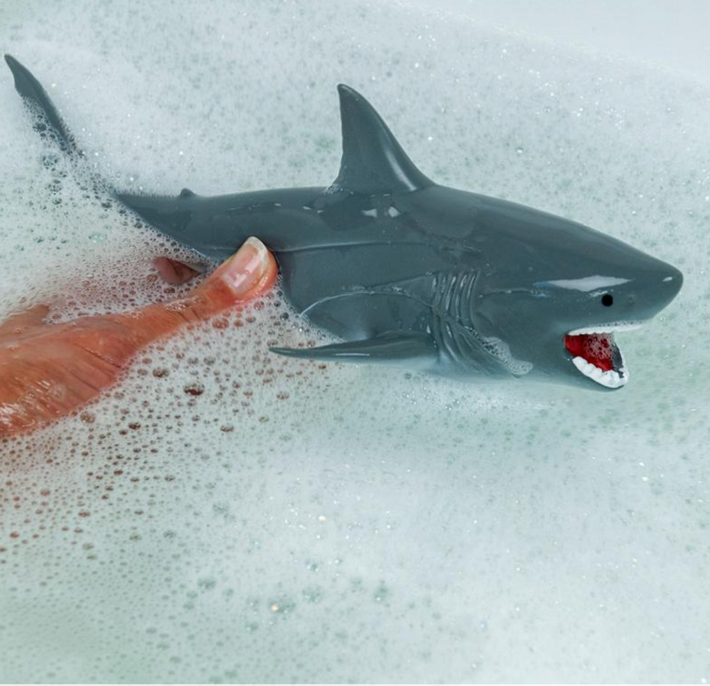 Get the kids excited for bath time and turn your bath into the ocean with this rubbery shark bath toy. Little ones can fill the shark with water and give him a squeeze to squirt water! Great for imaginative role play as well as simply splashing around.